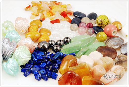每一個福袋裡除了會有12種不同形狀的天然石串珠材料(至少可以做出6~8條手鍊),