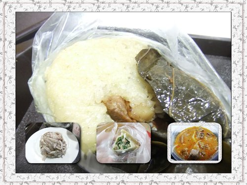 荷葉飯沒有入味,吃不出甜鹹,但是蒸的軟爛,竽頭丸放太久了,有點乾,韭菜餃皮沒有熟,