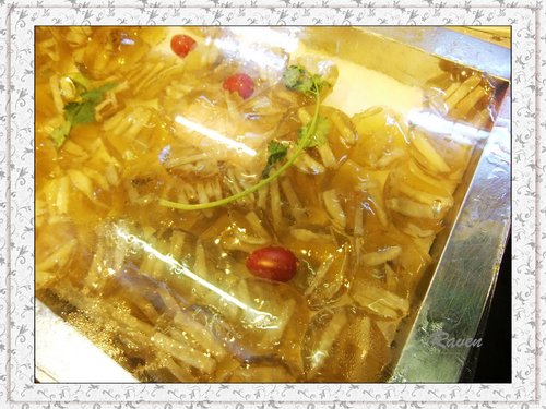 土筍凍是沾醬油吃的,清爽不油膩,烏鴉覺得一條一條的土筍吃起來脆脆的,