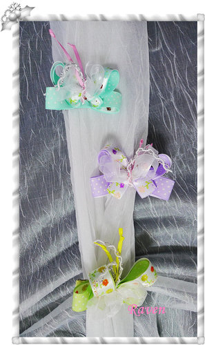蝴蝶結應用範圍還滿大的,可以當胸針,髮夾,絲巾扣,還可以設計成手腕花。