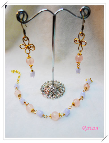 再來是用烏鴉的私房配件~鈴蘭造型的藍紋瑪瑙搭配圓潤的粉晶,
