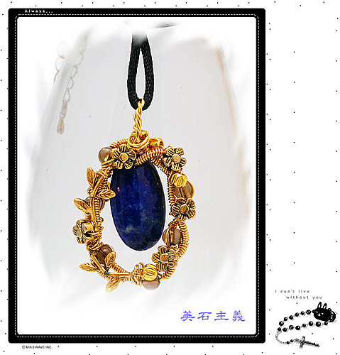 選用了金色的鋁線搭配青金石來試試看,像是一個金色的花圈,效果很不錯呢!