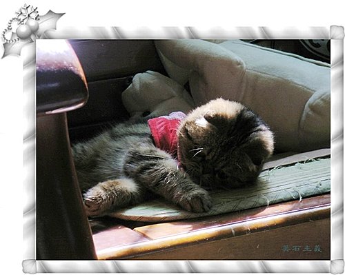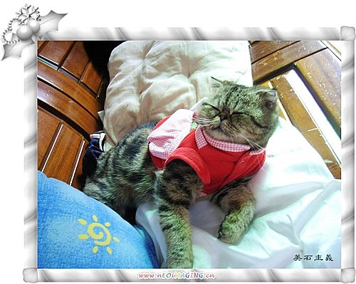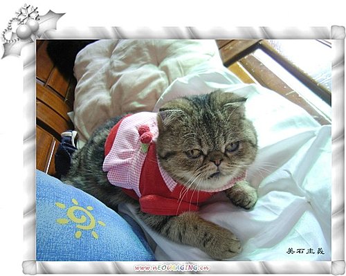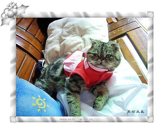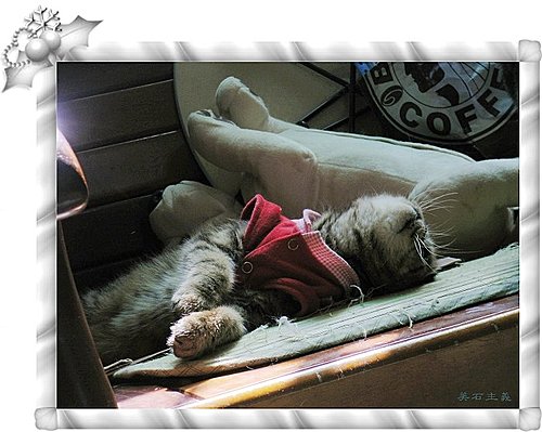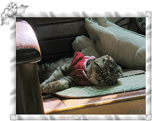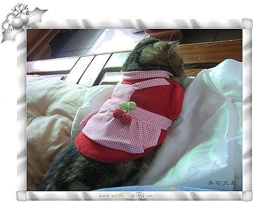 貓咪的衣服同樣也是傻瓜烏鴉的一廂情願,前前後後大概買了六七件吧!但是每一件幾乎都在一天內就被貓咪脫掉棄如敝屣啊!可是最近烏鴉幫宅宅買了一件可又愛又符合聖誕氣氛的小衣服,她居然很給面子穿了一個星期才搞丟,真是太感動了!