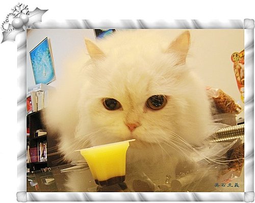 平常烏鴉是不給噹噹吃布丁的,因為要餵他吃藥才會買布丁獎勵他,噹噹真是白色貴公子啊!就算吃布丁還是那麼優雅啊!!