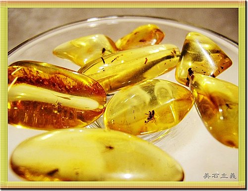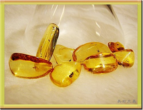 以下這些黃澄澄的琥珀是烏鴉用礦物和朋友換來的收藏品,仔細看這每一塊琥珀都有小蟲蟲在裡面,各種昆蟲因為被樹脂黏住而形成蟲珀,他們穿越時空,紀錄了數千萬年前地球的熱帶雨林中各種昆蟲與植物關係,語本莊子˙秋水:夏蟲不可以語於冰者,篤於時也。,我想那是因為莊子不知道琥珀裡的小蟲蟲比人類經歷更多的春夏秋冬啊~~