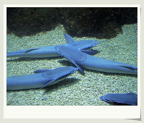 海中便車族,會搭便車的魚,頭部長得很像拖鞋鞋底的是吸盤,他就是靠吸盤吸附在大魚身上,不花力氣游,真是最懶惰的魚啊!