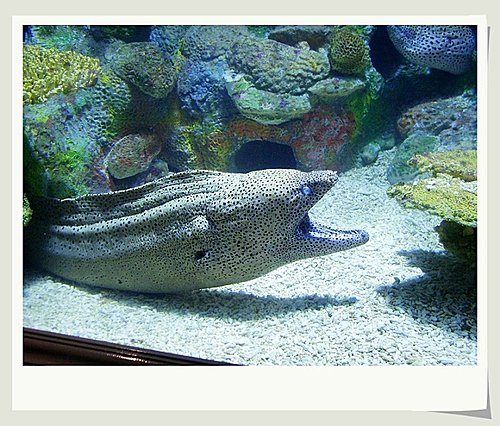 這是鰻魚的一種吧,看起來很兇,會在岩石的洞裡鑽來鑽去。