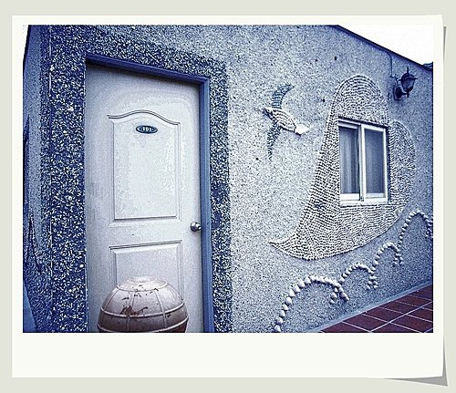 除了圖案是用貝殼拼貼,其實整面牆都是小貝殼啊!我想除了吉貝島大概很少地方會用這麼多貝殼!