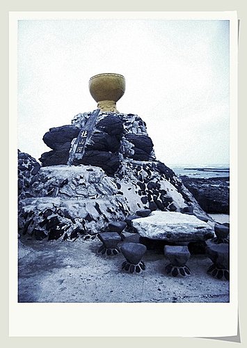 我想這是很難得的人生體驗,在十月強颱柯羅莎的籠罩下,我們一行人還是拖著行李箱在10/5上午八點半集合在松山機場,準時往澎湖出發。10/5天氣真的很好,這也是烏鴉和睡魔第一次去澎湖(烏鴉很幸運以眷屬身份參加睡魔第一次的員工旅遊喔!)台北飛往澎湖只有一個小時,還沒看完飛機上的報紙就到了馬公機場,離開機場我們隨即搭上遊覽車往港口出發,我們要先去吉貝島體驗一晚的島民生活,十一點的船準時出發,二十分鐘就到了吉貝島的港口,小貨車已經等著接我們去租摩托車的地方,在吉貝島因為都安排自由行,所以兩人一台摩托車是最方便的選擇,一領到摩托車我們就開心的四處亂逛,逛到吉貝島石滬紀念館稍微參觀一下,導覽員很訝異我們怎麼選在颱風來襲的時候過來,她說這時候通常島上已經沒有觀光客了