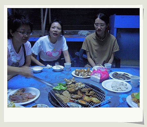 )。我們下午在村裡逛了半小時,聽村民在說:颱風關係,明天一天都沒有船~都沒有船的意思就是我們一行二十多個人都要留在吉貝島耶~~可是這個島,我們逛完了,那明天一天要在島上做什麼??果然,晚上的烤肉大會就宣佈了這個消息,沒有船開,所以我們要被困在吉貝島兩個晚上,但是也因此可以多玩一天,本來三天兩夜的行程變成四天三夜了~第一個晚上,看完電視就回房間睡覺(其實電視收訊不太好,只有幾台是清晰的畫面),烏鴉還不習慣這麼早就寢(晚上十一點),一直聽到的海浪聲以為是狂風暴雨,很奇妙的體驗。
