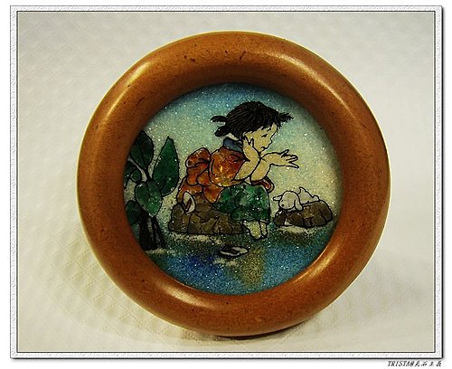 這種畫其實很多年以前就有了,在台灣有看過幾幅,可是都是一些比較傳統的畫風,不是八駿圖的駿馬,就是一帆風順的大船,再不然就是佛像,關公之類,雖然也很美,可是就是沒有可愛的感覺啦!!所以烏鴉買兩個當這次香港的戰利品!!其實寶石是越來越貼近現代人的生活,老闆有跟我們介紹新的技術已經可以拿相片去訂做,所以結婚不只可以拍婚紗,還可以拿婚紗照去訂做一幅寶石畫更炫!!
