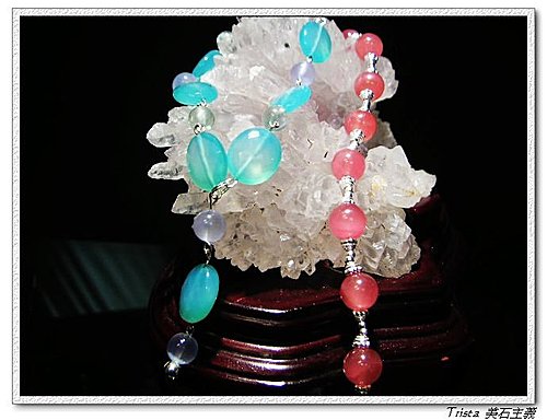 這次在香港其實敗了很多當初沒想到會買的石頭,海藍玉髓就是其中之一,那種藍綠真的很像海水藍寶的顏色(當然也有分等級啦!),說也奇怪,一看到它我就知道要如何配色,腦中自動畫好圖,真是命運的邂逅啊!!