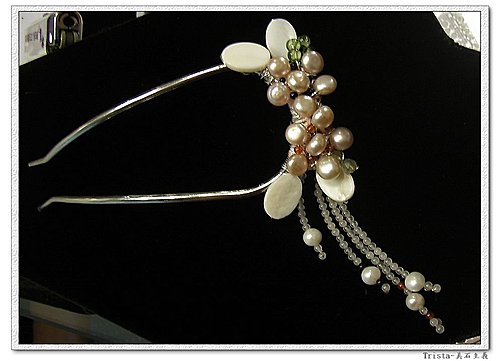 )因為從小喜歡中文,對髮簪特別情有獨鍾,充滿無可救藥的浪漫遐想!所以這次的主題就是髮簪囉!查了相關資料也去歷史博物館看過清朝文物展,才知道簪、釵、步搖是三種不一樣的東西耶!其實古代的人是很愛美的,光髮髻在漢代就有十幾種編法,髮飾也是越來越繁複華麗,在中國用珠寶玉石來裝飾頭髮的歷史就超過2000年以上,而髮簪的材質也是包羅萬象,一般平民百姓用木,骨,王公貴族用金,銀,銅,玉石,玳瑁,象牙......等。