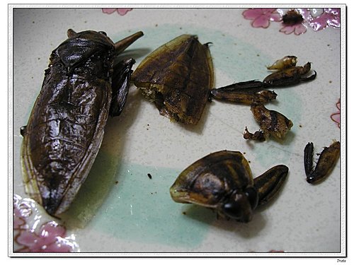 朋友說這是椿象!?當地人都炸來吃,脆脆的!他一直強調"就勇敢的把他吃下去吧!"