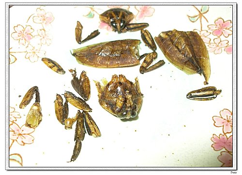 應該是用炸的吧!6隻腳,沒有鬍鬚,眼睛很大呢!