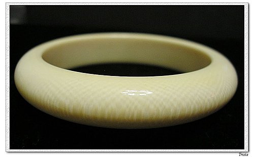 這只象牙手鐲是幾年前因緣際會收到的,象牙的花紋及色澤很特別,在樸實中有華麗感,華麗中又有溫暖的感覺,這只手圍略大,純粹收藏欣賞!