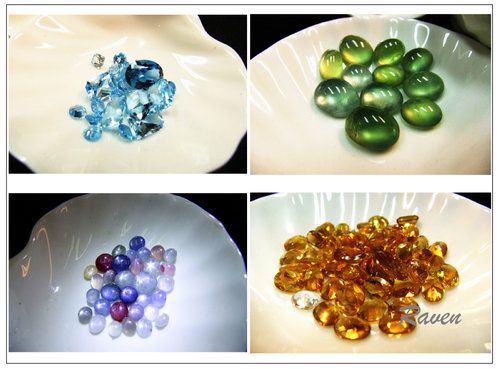 上圖有蛋面葡萄石,切面黃水晶,拓帕石,蛋面星光紅藍寶,所以裸石的種類和尺吋沒有極限啊!